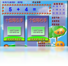 长风少儿加减法是一款专门为学龄前儿童学习加减法所设计的,前无古人的设计理念,加减法学习最完美的软件。精美的水果版面设计,一定会让您眼前一亮,让您用的满意,让您的宝宝学的开心。长风少儿加减法题目内容丰富,操作简单,很适合儿童使用,可以只用鼠标操作使用可以完成学习,练习,测试等过程,可以很好的提高孩子的口算和心算能力。
