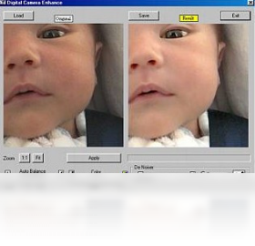 Digital Camera Enhance让你的数码照片更漂亮,能帮你把数码照片上的杂点清除。只要按个钮,程序自动帮你消除杂点、让皮肤感觉更光滑,并调整颜色平衡。如果你的相片在光线不足的地方拍的,那Digital Camera Enhance就能发挥最大的功用,如果原本就拍的不错的话,那你可能看不到太大的差别…。你可以调整自动平衡、亮度(Midtones)、颜色等等,还可以看着“调整前”、“调整后”的照片调整消除杂点的程度。支持各种格式的文件,包括bmp、jpg、pcx、png、tga、tif、wmf和pax。