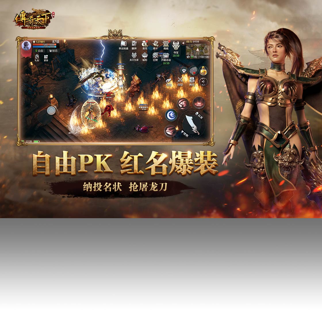 《传奇天下》是一款正版授权、精心打造的传奇类手游。游戏在战法道三职业、打怪打宝、红名pk、行会攻沙等经典元素的基础上,集结端游研发团队,通力合作,用顶尖的UE4引擎,刻画精细的生态环境、栩栩如生的人物模型;配合铭文加持下的全新技能特效,打造震撼的多人同屏,纯血火拼的攻沙玩法,致力于为玩家们带来指触间,最畅快的城战体验!