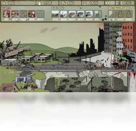 在一个老旧的公园里,建筑队正在进行公园的翻修工作,然而当他们撞开一个房子的门时,里面却突然涌出了大批的僵尸,于是,一场建筑队与僵尸之间的攻防战就此展开……游戏很有意思,你可以生产厂房增加人口上限,可以招募工人、火枪队、冲击车来对抗僵尸,目的就是防御好自己的基地,并且拆除僵尸盘踞的大楼。如果想要更好的对抗僵尸,建造能够生产资金的厂房是必不可少的哦,当你击败僵尸获得的积分累计到一定程度时,还可以施放积分大技能,对僵尸军团进行一次大冲击哦!
