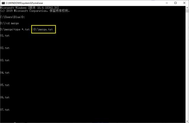 确认文件目录正确后,接下来就是通过命令快速合并txt文本文档。