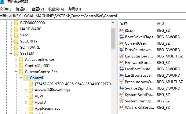 3、打开文件夹HKEY_LOCAL_MACHINE\SYSTEM\CurrentControlSet\Control,看右侧是否有“StorageDevicePolicies”。