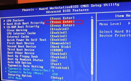 2、如果是以下界面,选择Advanced BIOS Features回车;