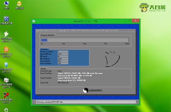 9、转到这个界面,执行系统安装到C盘的操作,这个过程需要5分钟左右,耐心等待即可;