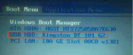4、将U盘插入需要修复的电脑上,按下电源键,迅速敲击启动热键,弹出boot选择界面,选择USB选项,回车。