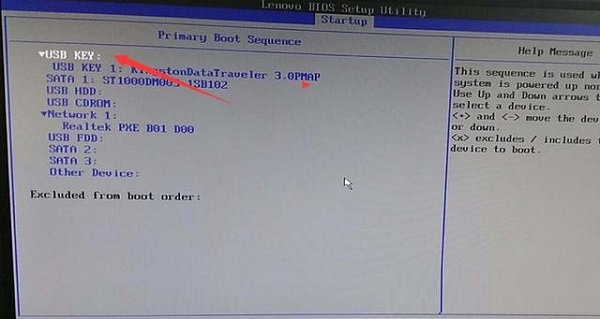 4、操作完成后,通过键盘上的“”或“-”键将USB键选项移到顶部,进入下一步。