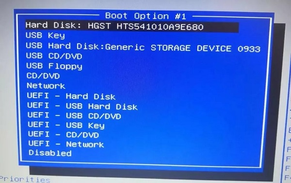 4、选择USB Hard Disk,后面的表示你U盘的名称,注意,安装win7就不要选UEFI开头的噢。
