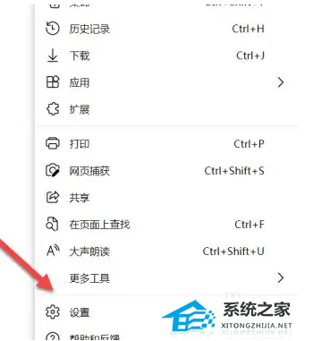 2、点击之后会在下方弹出Edge浏览器的菜单窗口,在窗口中点击打开“设置”页面。