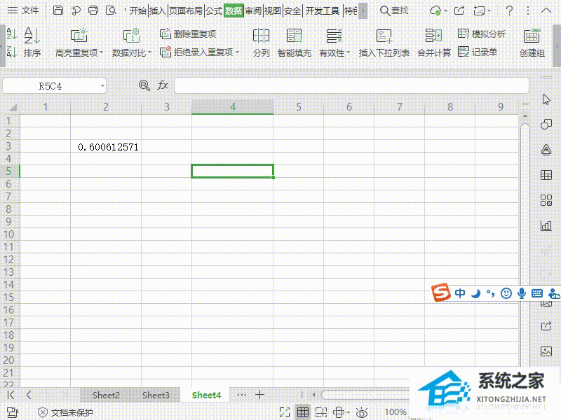 使用WPS Office打开表格,选中需要需要输入数值π的单元格。