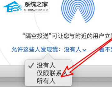 5、点击下拉框,然后选择「所有人」,这样就允许其他设备搜索到你的设备了。