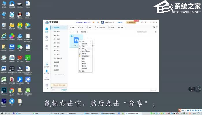 在百度网盘中选择你要下载的文件,鼠标右击它,然后点击“分享”。