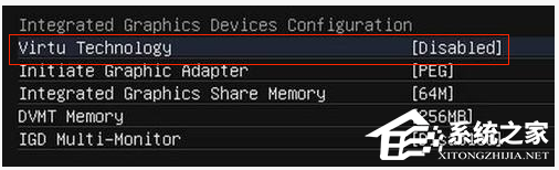 1、进入BIOS页面后,找到“SETTINGS”——“Advanced”——“Integrated Graphics Configuration”——“Virtu Technology”选项,把“Disabled(禁止)”修改为“Enabled(允许)”;