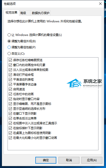 右键【我的电脑】>属性>高级系统设置>性能标签下的设置>调整为最佳外观。