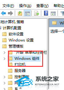2、打开策略组编辑器后,依次展开【计算机配置】—【管理模板】—【Windows组件】—【Windows更新】。