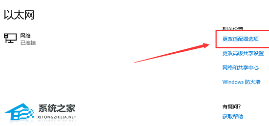 4、之后可以打开网络中心,在以太网的相关配置中,点击更改适配器选项。