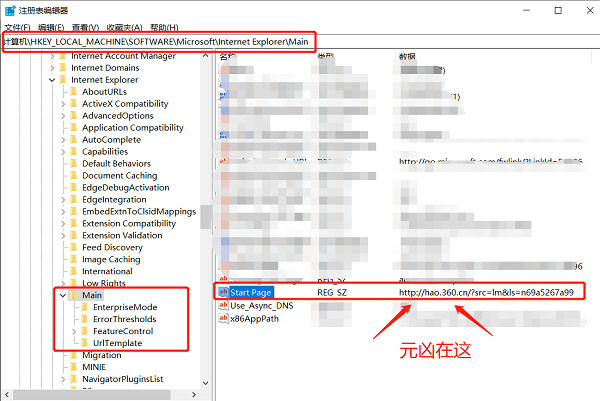 3、在搜索框中输入劫持首页的网址,然后点击查找,删除所有找出来的项、值(改成自己想要的主页也行)。