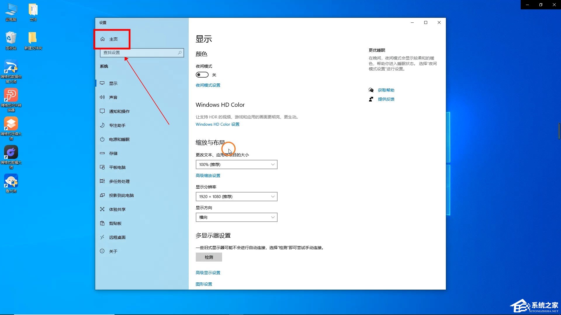 然后点击上方的“主页”。