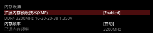 2、在BIOS各个选项中找到“XMP”(Extreme Memory Profile),不同厂家可能对其名称有不同的描述,将其设置为“启用”(Enabled)并保存更改重启。