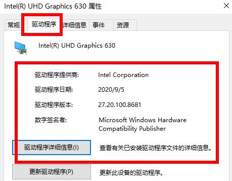 4、进入属性后可以点击“驱动程序”任务选项卡,即可查看到详细的驱动信息。