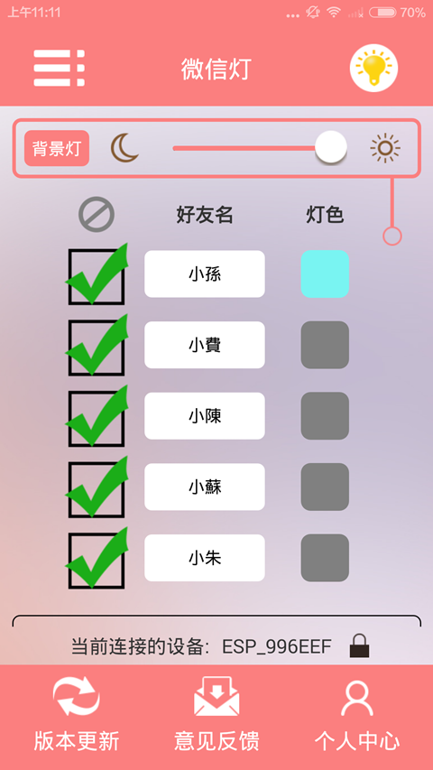 微信灯app是一款智能wifi微信灯,无开关按键,即插即用,主要功能为将手机微信转换为灯光颜色提示和简短滴滴声,它最大的不同与普通小夜灯就是加入了手机app与wifi功能。