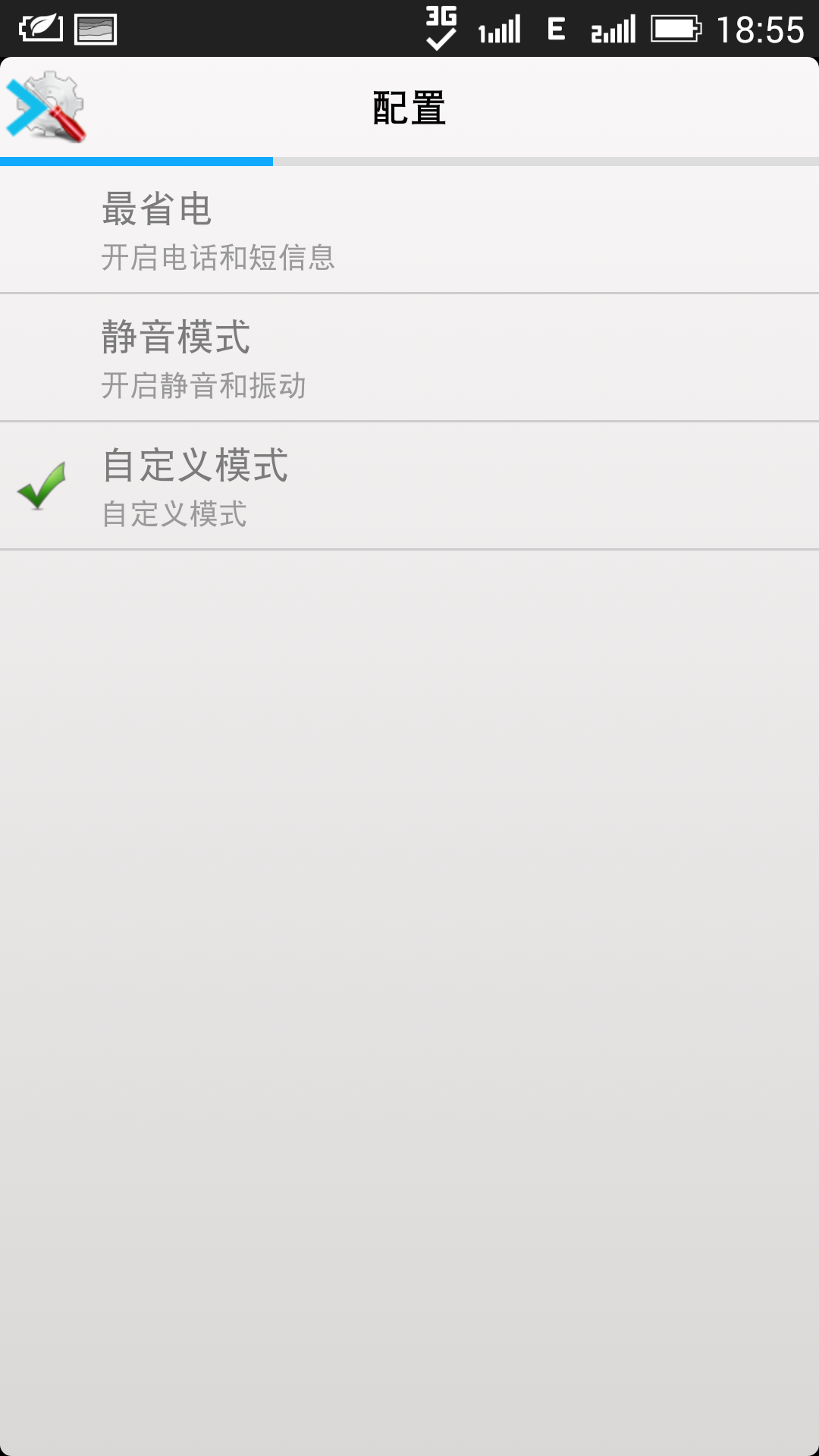安卓省电软件是一款性能优秀的电池电量优化工具,该软件支持不同省电模式,既可以采用最省电模式,也可以按照你自己的自定义设定模式来单独控制调节屏幕亮度,wifi,蓝牙,飞行模式,GPS,振动,同步,屏幕超时,联网等等各种选项,操作简单,非常方便使用。