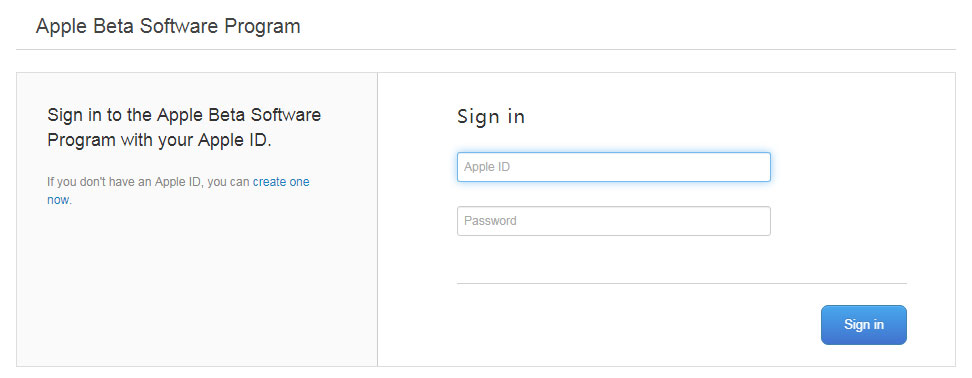 1.首先在电脑浏览器或您的iOS设备自动的 Safair浏览器 中打开 Apple Beta版软件计划页面网址(点此直达) ,然后使用您的Apple ID账号登陆,如图所示;