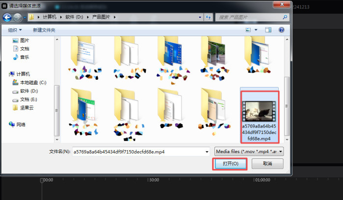 3、然后打开计算机中需要进行水印的视频文件;