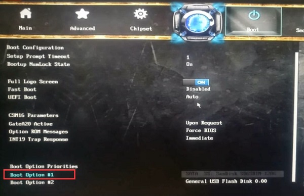 3、在Boot界面方向键往下移到“Boot Option #1”上面按enter回车。