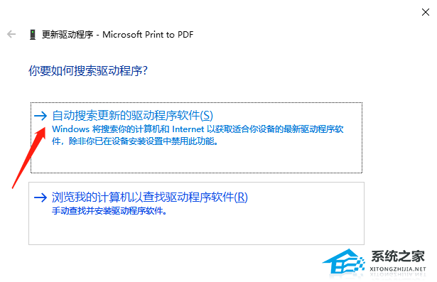4、你要如何搜索驱动程序?分别有【自动搜索更新的驱动程序软件(Windows 将搜索你的计算机和 Internet 以获取适合你设备的最新驱动程序软件,除非你已在设备安装设置中禁用此功能)】和【浏览我的计算机以查找驱动程序软件(手动查找并安装驱动程序软件)】,有下载驱动程序的情况下,建议选择第二项,如果没有从打印机官网上下载最新驱动程序,可以选择自动搜索驱动程序软件;